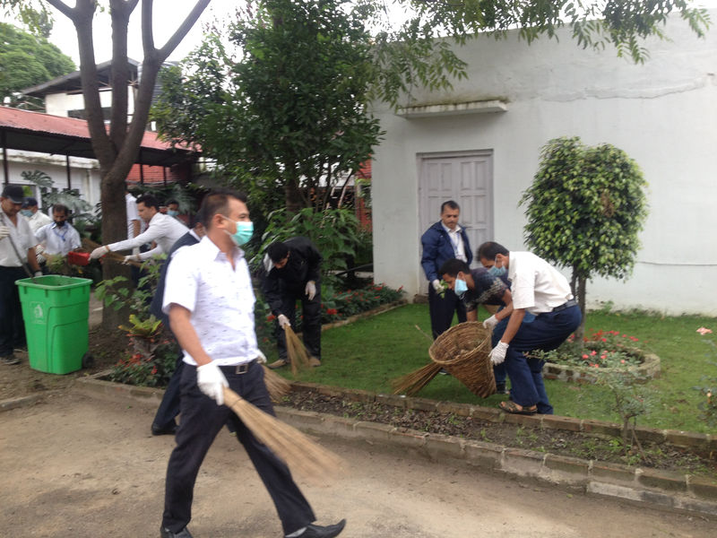 निजामती सेवा दिवसको अवसरमा सचिवालयका कर्मचारीहरू सिँहदरवार सरसफाइ सम्बन्धि कार्यक्रम मा सहभागी हुँदै मिति २०७३-५- २१