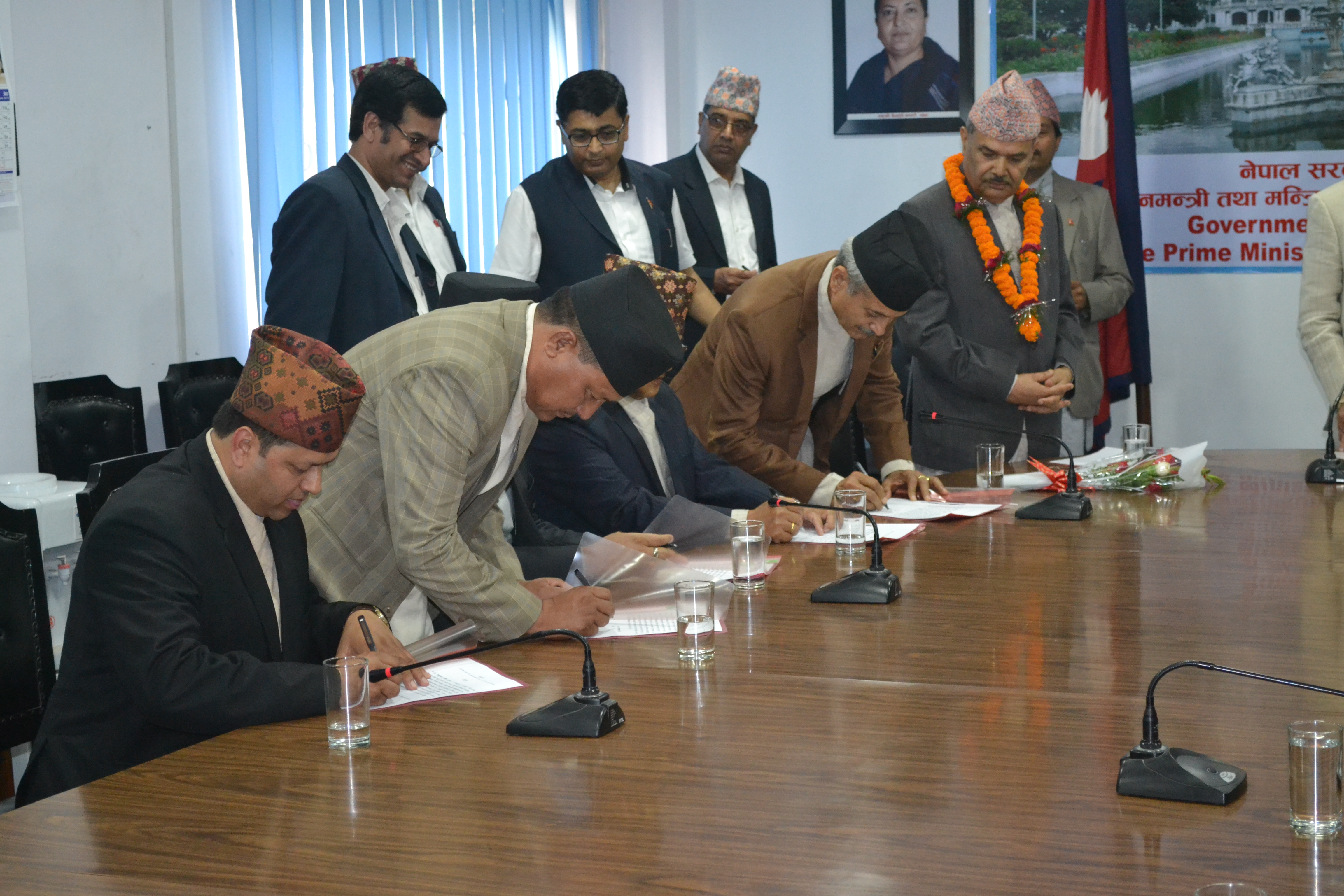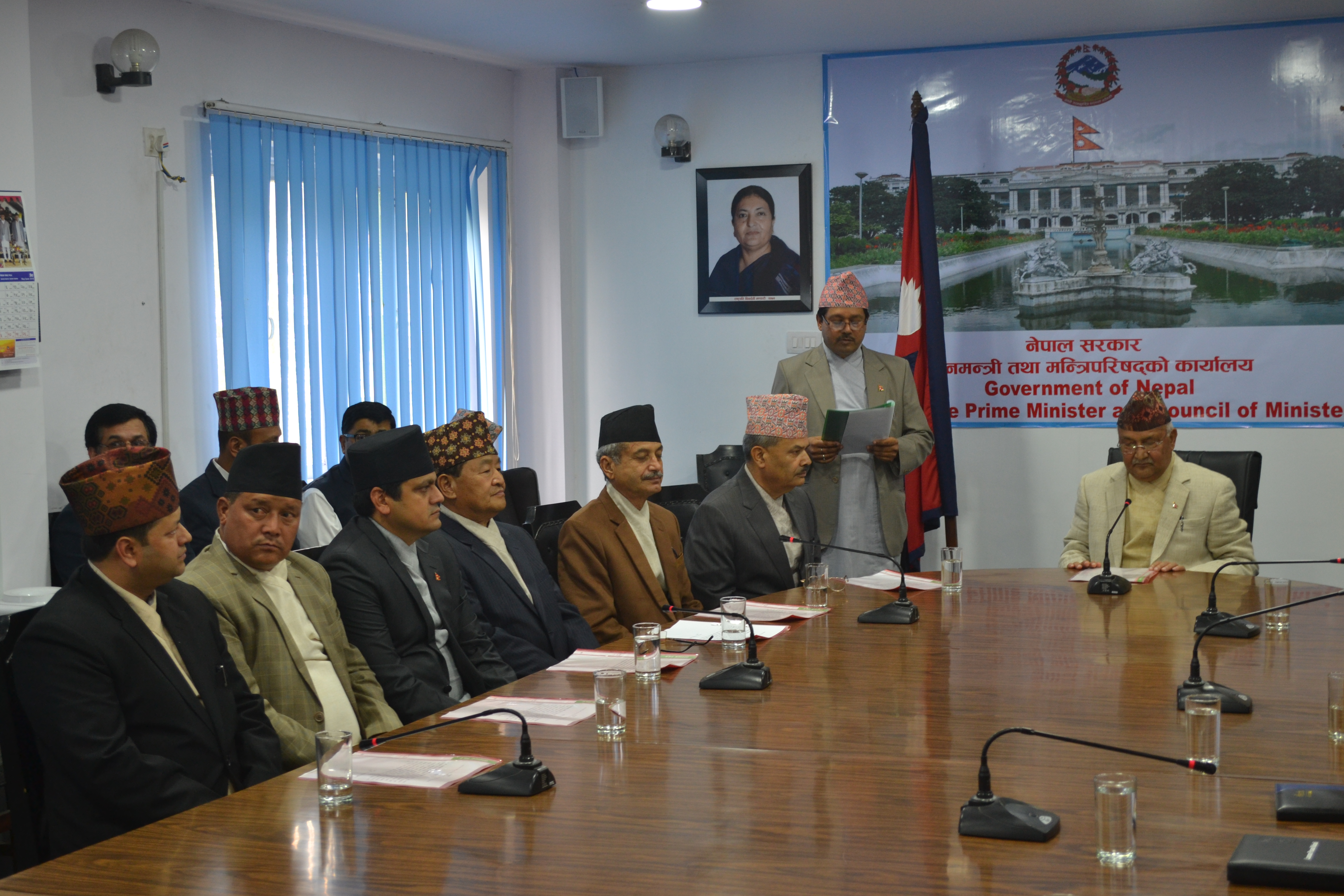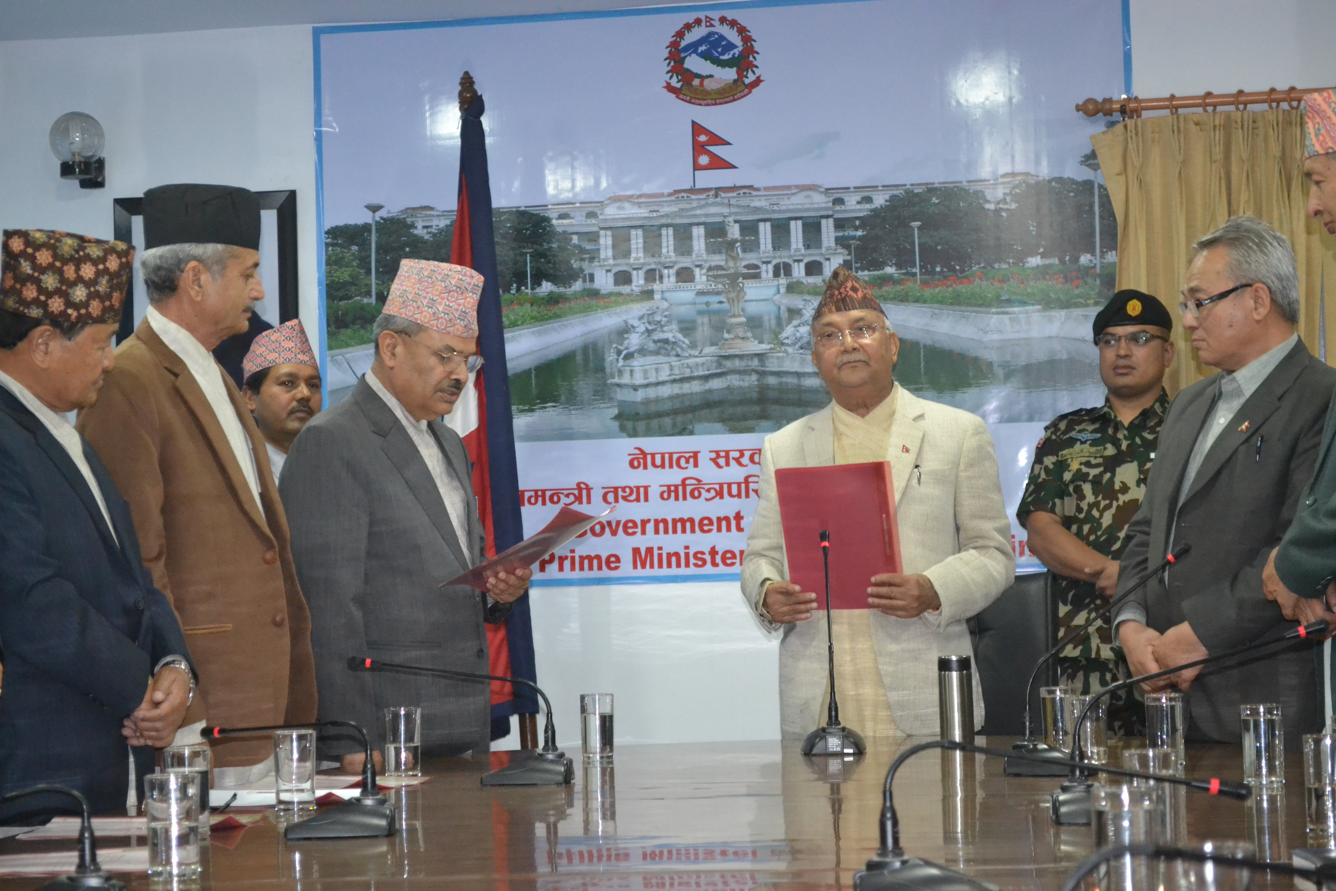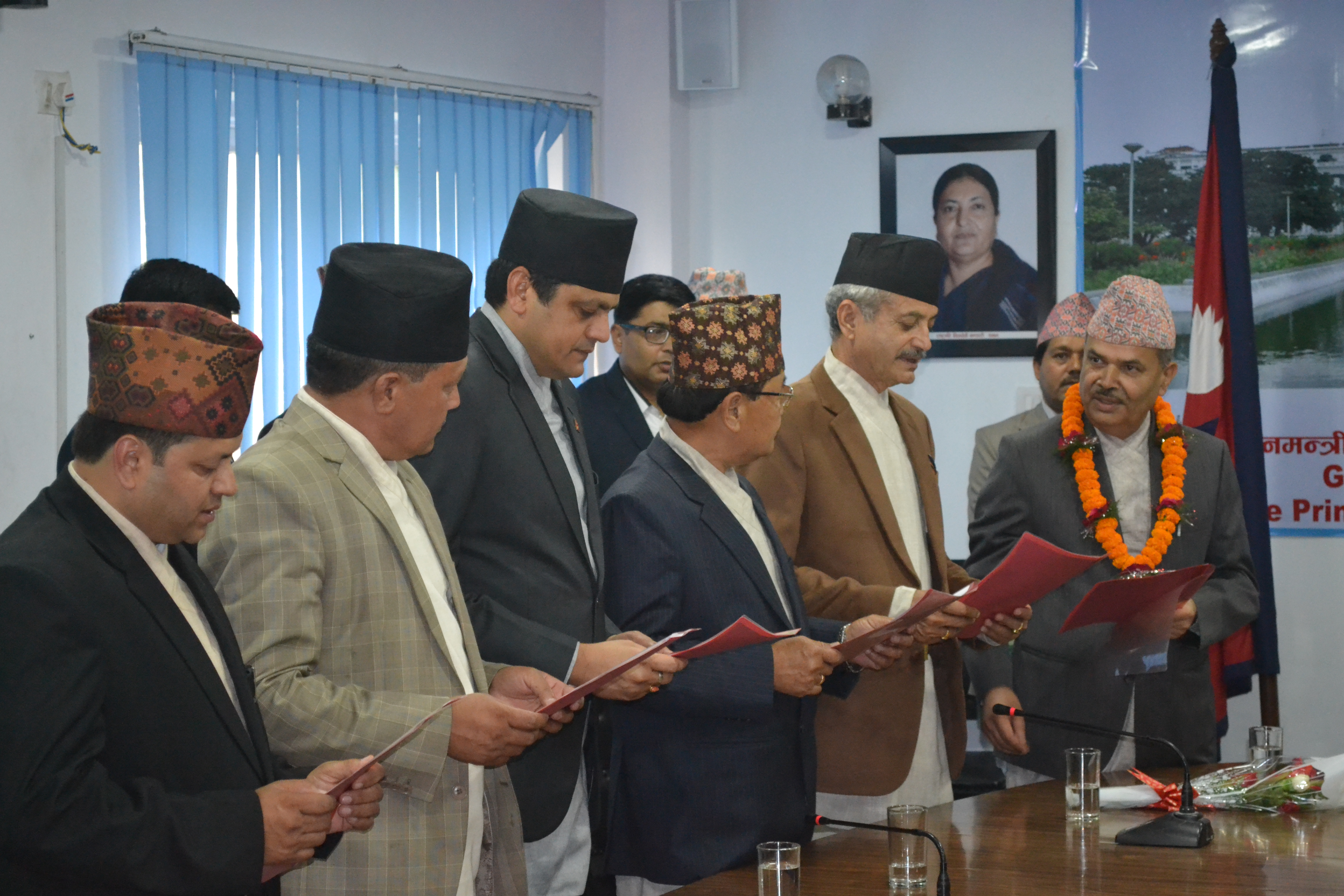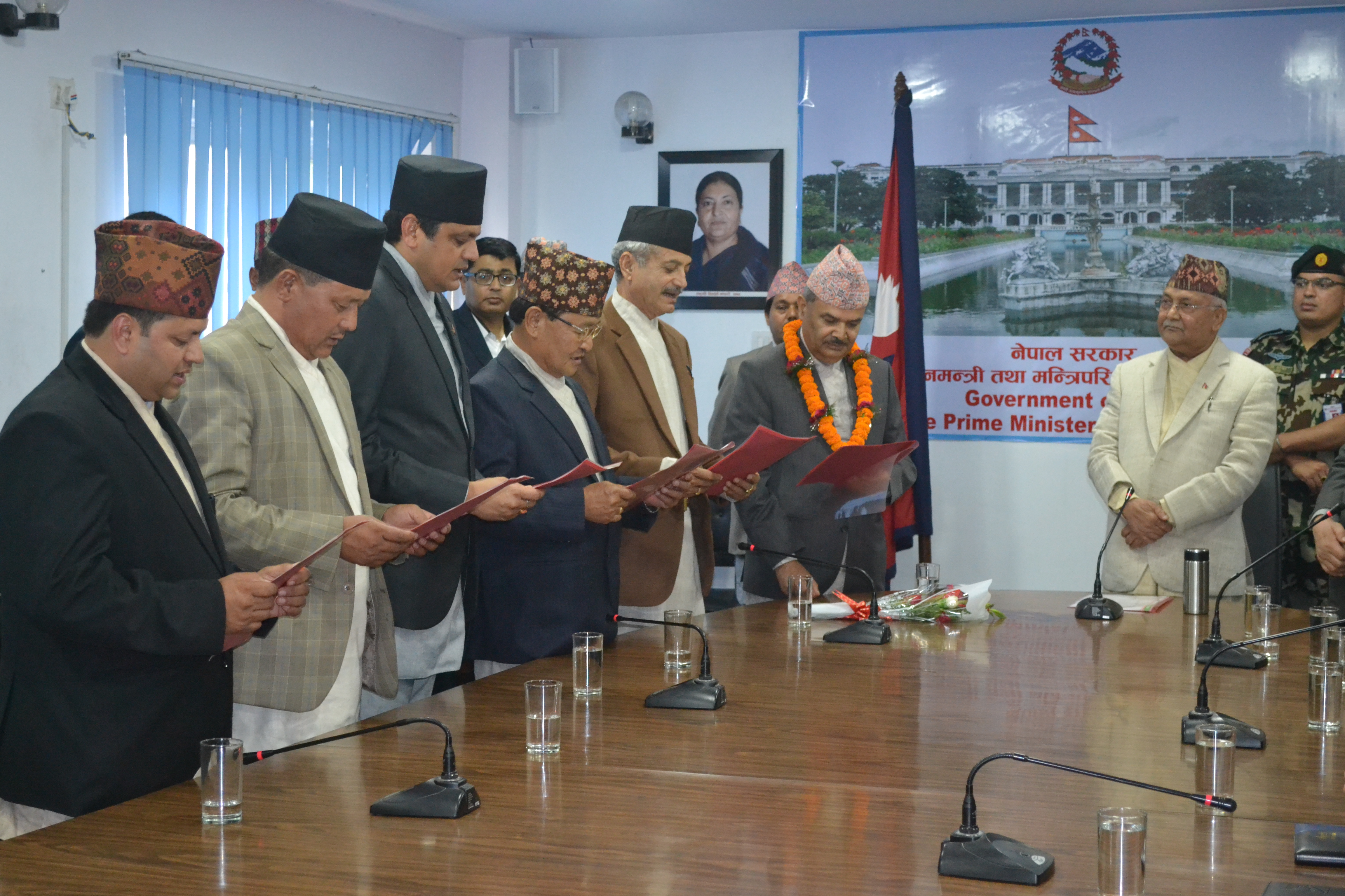 सम्माननीय प्रधानमन्त्रीज्यू समक्ष योजना आयोगका माननीय उपाध्यक्षज्यू तथा सदस्यज्यूहरूको सपथ कार्यक्रम